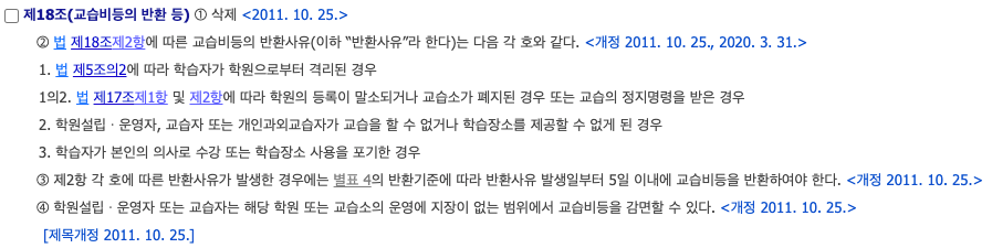 학원비 환불 반환 기간 및 규정 위반 시