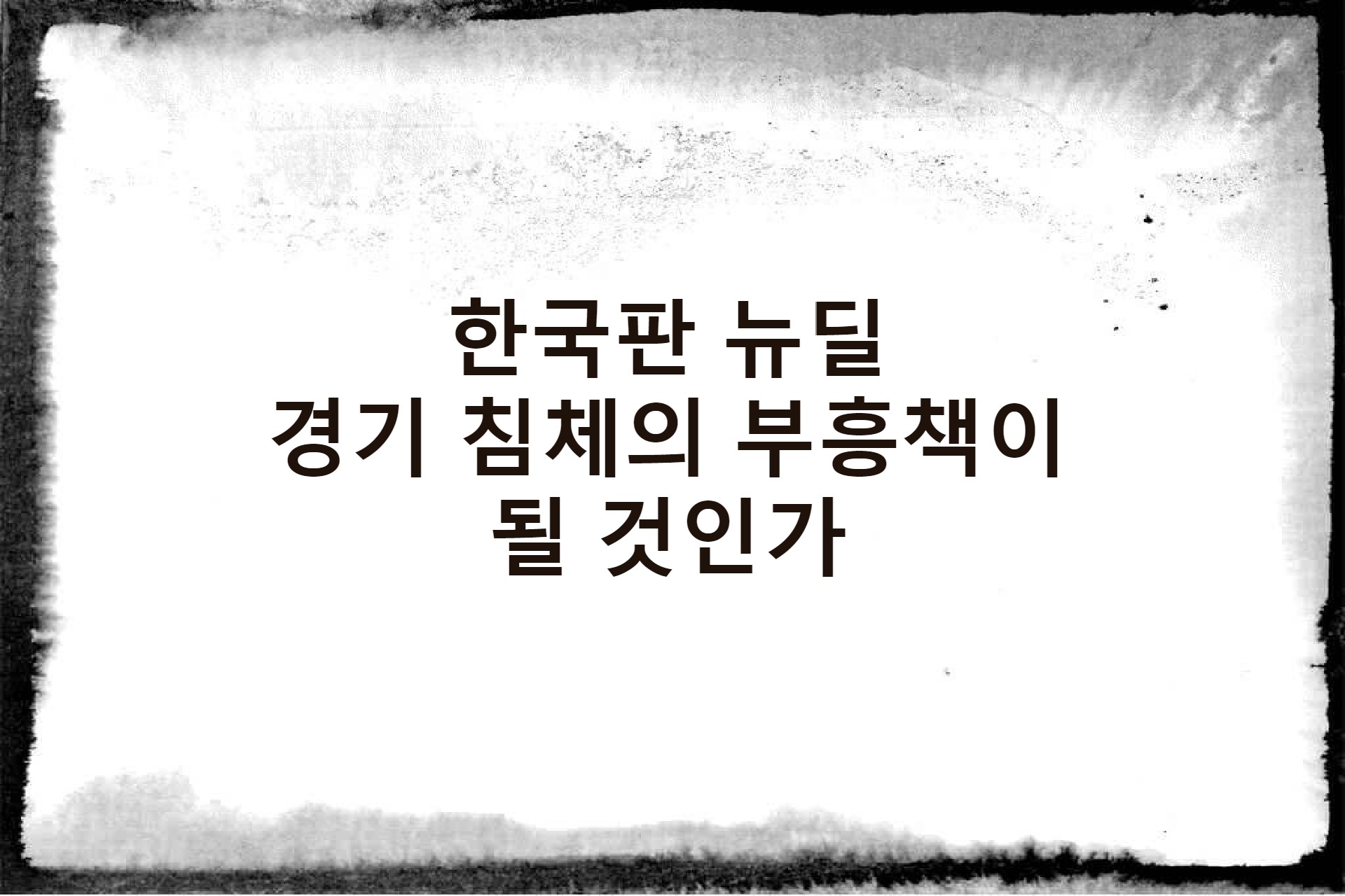 한국판 뉴딜, 경기침체의 부흥책이 될것인가